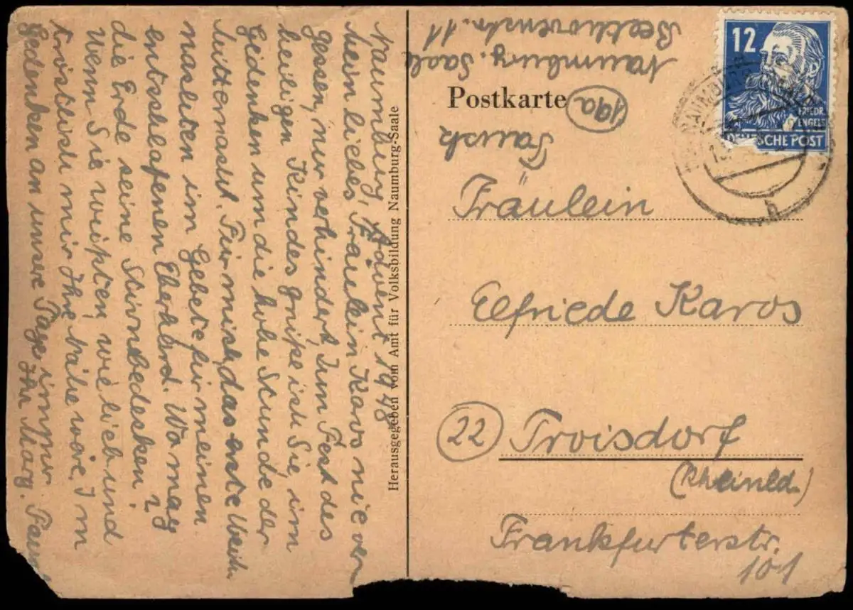 Gelaufen: 13.12.1948 mit Stempel Naumburg nach Troisdorf