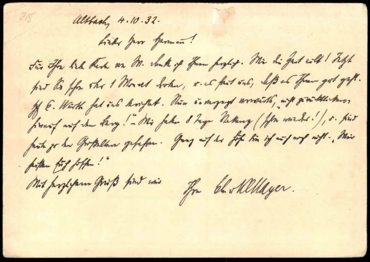 Gelaufen: 04.10.1932 mit Stempel Altbach nach Wilhelmsdorf bei Ravensburg