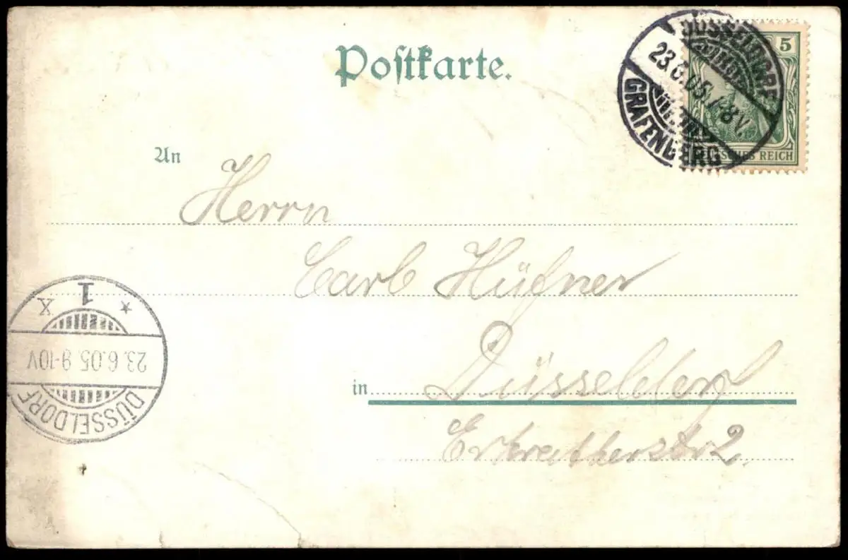 Gelaufen: 23.06.1905 mit Stempel Düsseldorf nach Düsseldorf