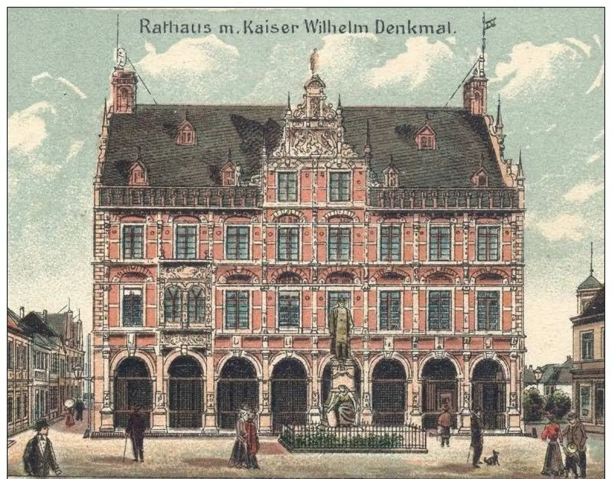 ALTE LITHO POSTKARTE GRUSS AUS BOCHOLT RATHAUS M. KAISER-WILHELM-DENKMAL