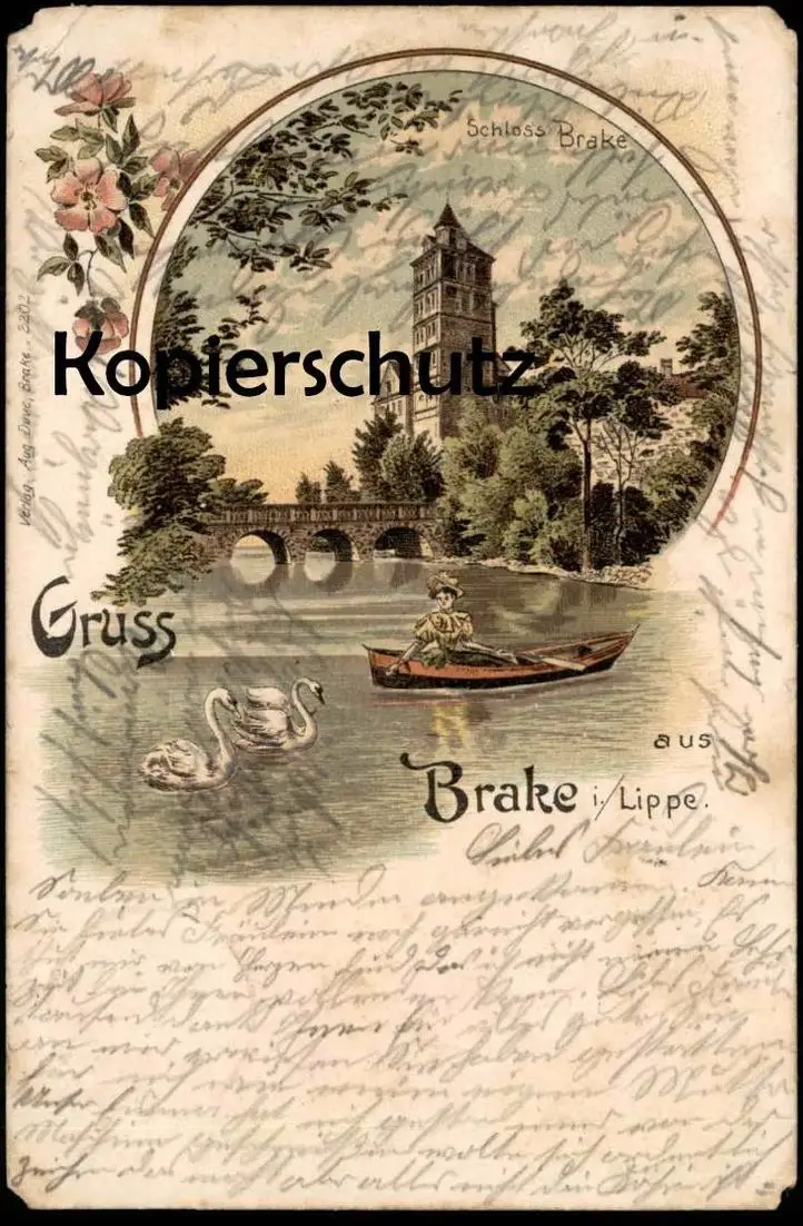 ALTE LITHO POSTKARTE GRUSS AUS BRAKE I. LIPPE SCHLOSS BRAKEVerlag: Aug. Duve, Brake