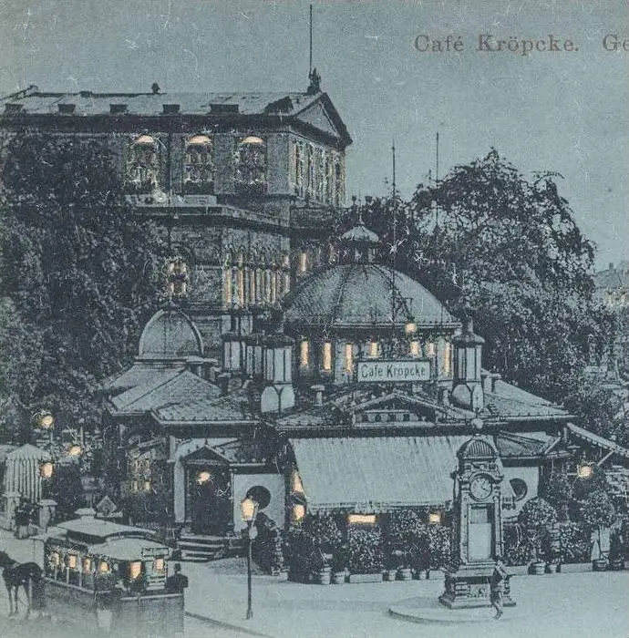 ALTE HALT GEGEN DAS LICHT LITHO POSTKARTE GRUSS AUS HANNOVER CAFÉ KRÖPCKE GEORGSTRASSEVerlag: W. Hagelberg, Berlin