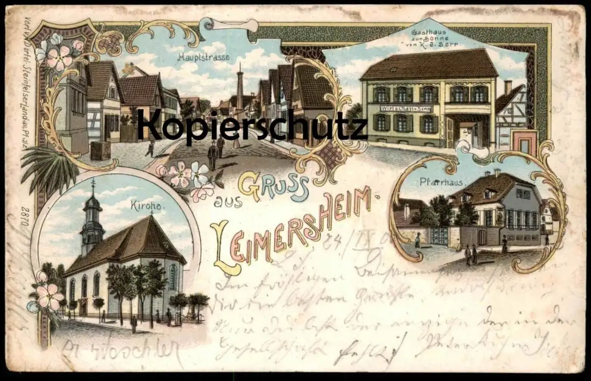 ALTE LITHO POSTKARTE GRUSS AUS LEIMERSHEIM GASTHAUS ZUR SONNE BESITZER K. J. SERR PFARRHAUS HAUPTSTRASSE AK postcard cpa