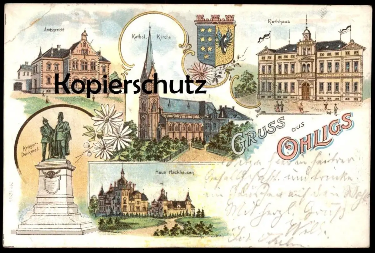 ALTE LITHO POSTKARTE GRUSS AUS OHLIGS HAUS HACKHAUSEN KRIEGER-DENKMAL AMTSGERICH KATHOL. KIRCHE RATHHAUS