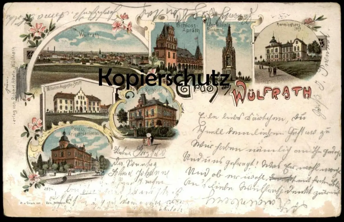 ALTE LITHO POSTKARTE GRUSS AUS WÜLFRATH 1898 WILHELM-AUGUSTA-STIFT SCHLOSS APRATH HERMINGHAUS-STIFT Ansichtskarte cpa AK