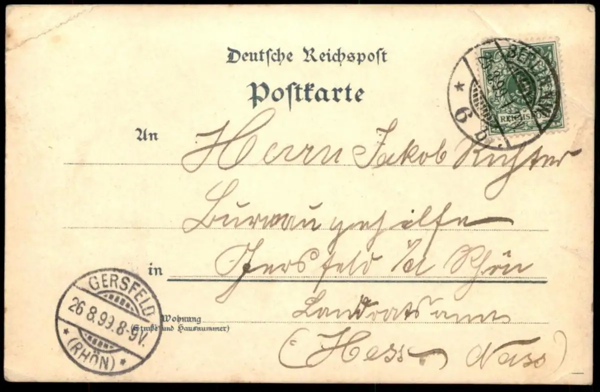 Gelaufen: 25.08.1899 mit Stempel Berlin nach Gersfeld (Rhön)Erhaltung (s. Scan): mittel, Ecken oben bestoßen / 915660