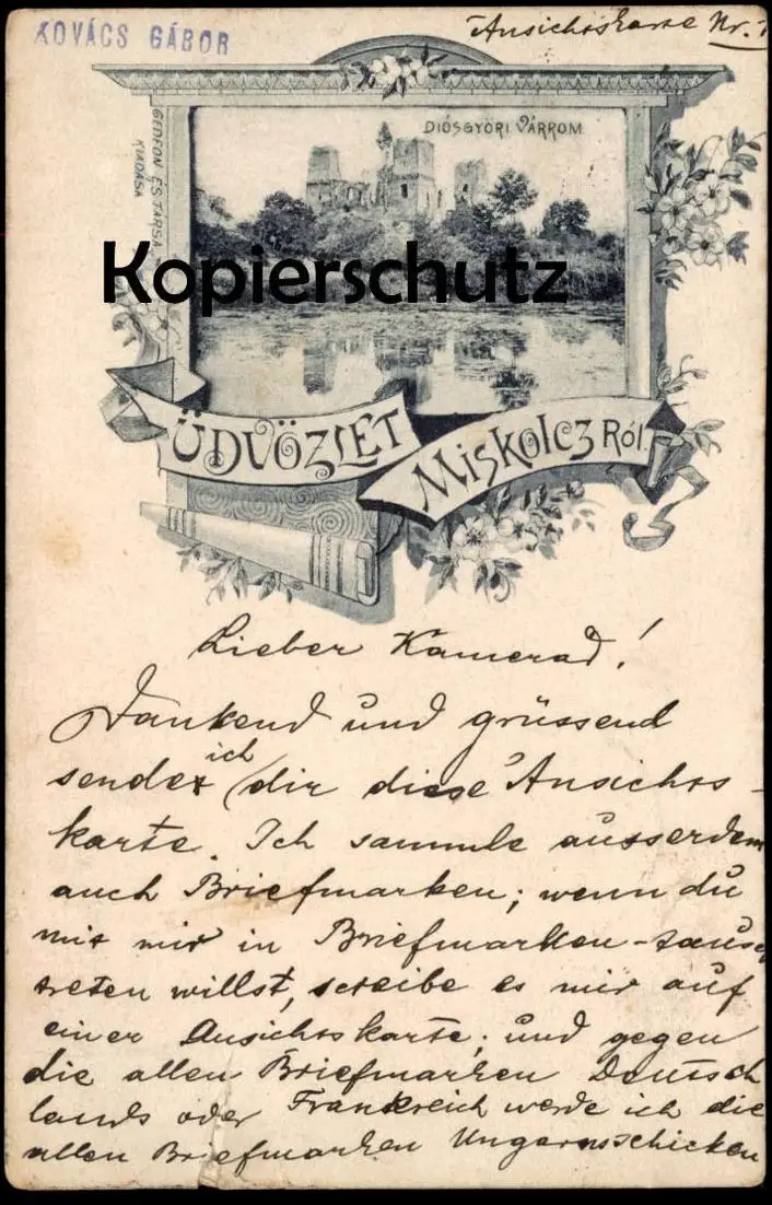 ALTE LITHO POSTKARTE ÜDVÖZLET MISKOLCZ DIOSGYÖRI VARROM MISKOLC 1897 Mischkolz Ungarn Hungary Hongrie Magyar postcard AK