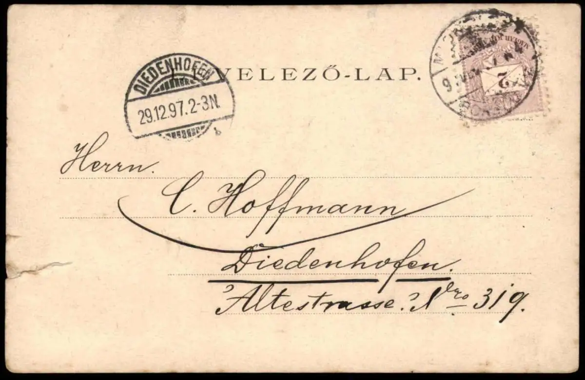 Gelaufen: 29.12.1897 mit 2 Kreuzer-Briefmarke nach Diedenhofen