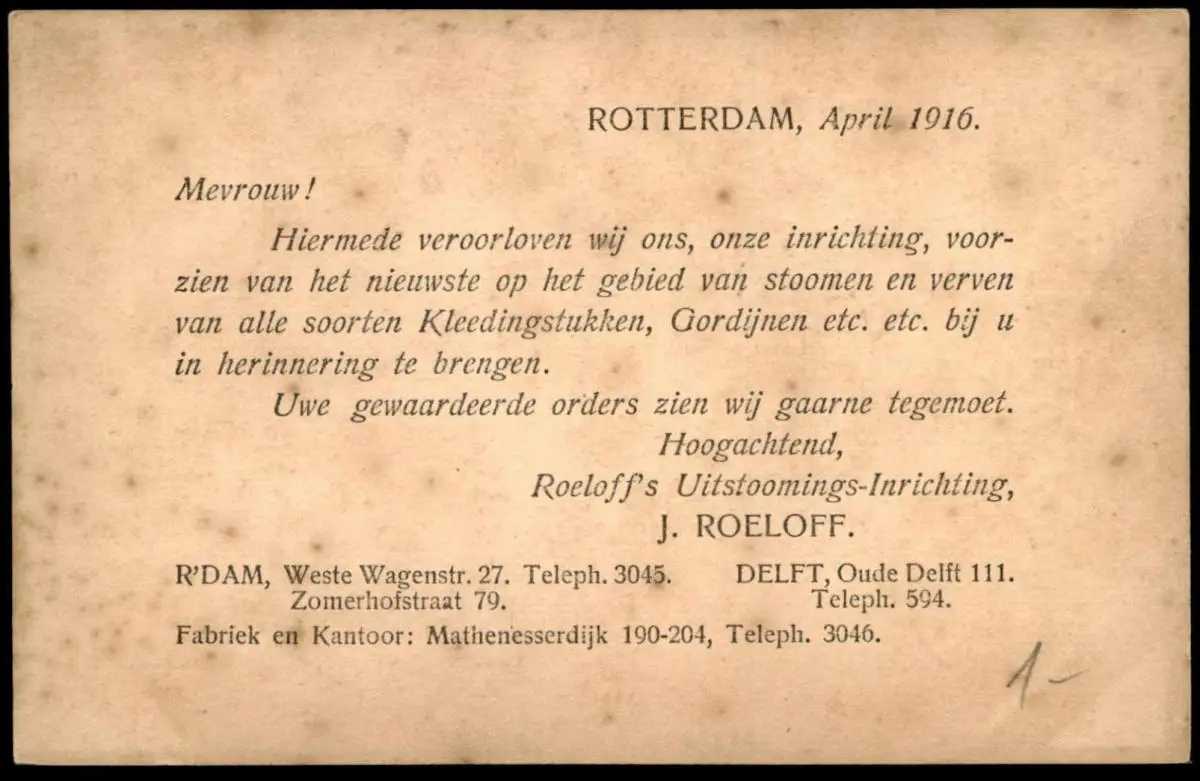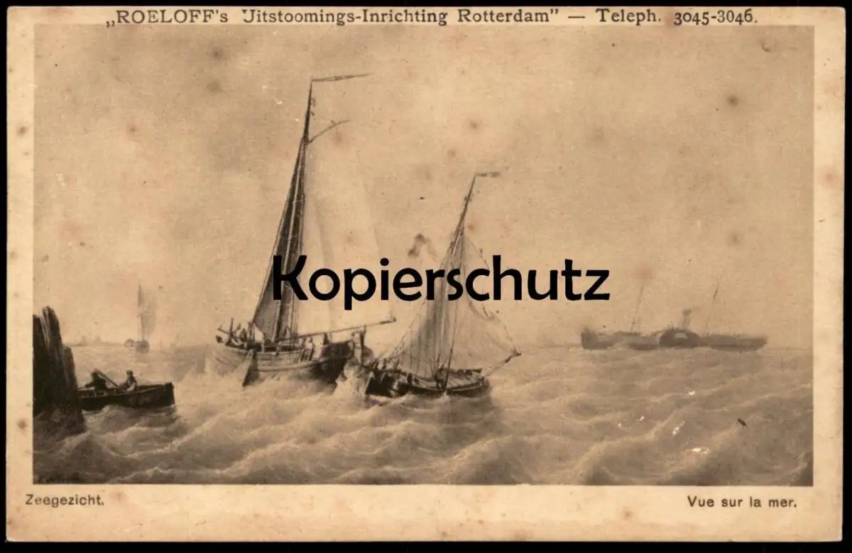 ALTE MARITIME KÜNSTLER POSTKARTE ZEEGEZICHT VUE SUR LA MER WERBUNG ROELOFF´ S JITSTOOMINGS-INRICHTING ROTTERDAMVerlag: unbekannt