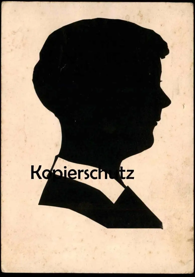 ALTE KÜNSTLER KARTE MÜNCHEN ERINNERUNG AN DIE BAYERISCHE HANDWERKSAUSSTELLUNG 1927 (AUFDRUCK AUF GLEICHARTIGER KARTE VORHANDEN) PORTRÄT JUNGE SCHERENSCHNITT ORIGINAL AUFGEKLEBTES SCHWARZES PAPIERVerlag: unbekannt