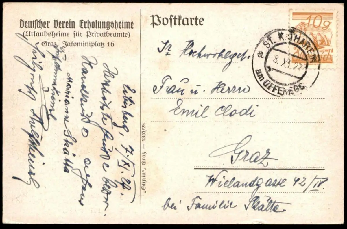 Gelaufen: 08.11.1927 mit Stempel St. Kathrein am Offenegg nach GrazErhaltung (s. Scan): gut, unten links minimaler Abrieb, Ecke oben rechts minimal bestoßen / 916191