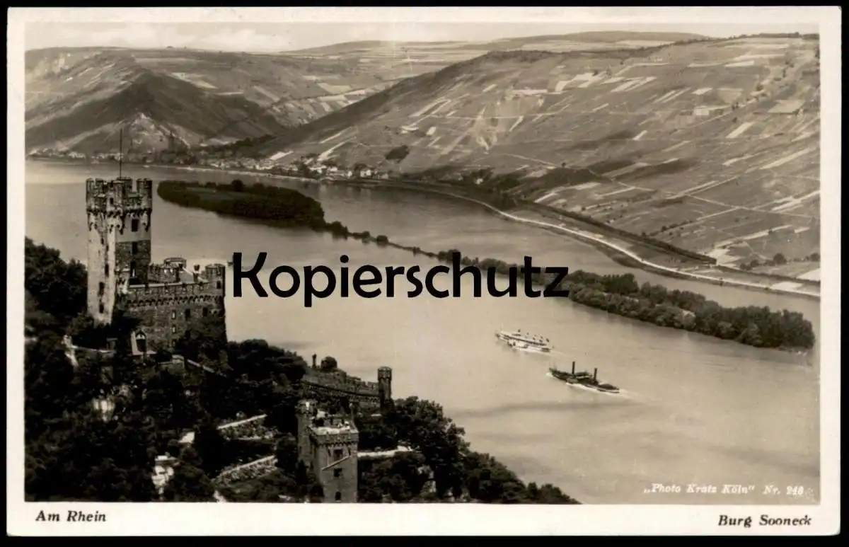 ALTE POSTKARTE AM RHEIN BURG SONNECK NIEDERHEIMBACH SCHIFFE DAMPFER, rückseitig Stempel M.-S. GRAF ZEPPELINVerlag: F. Kratz, Köln