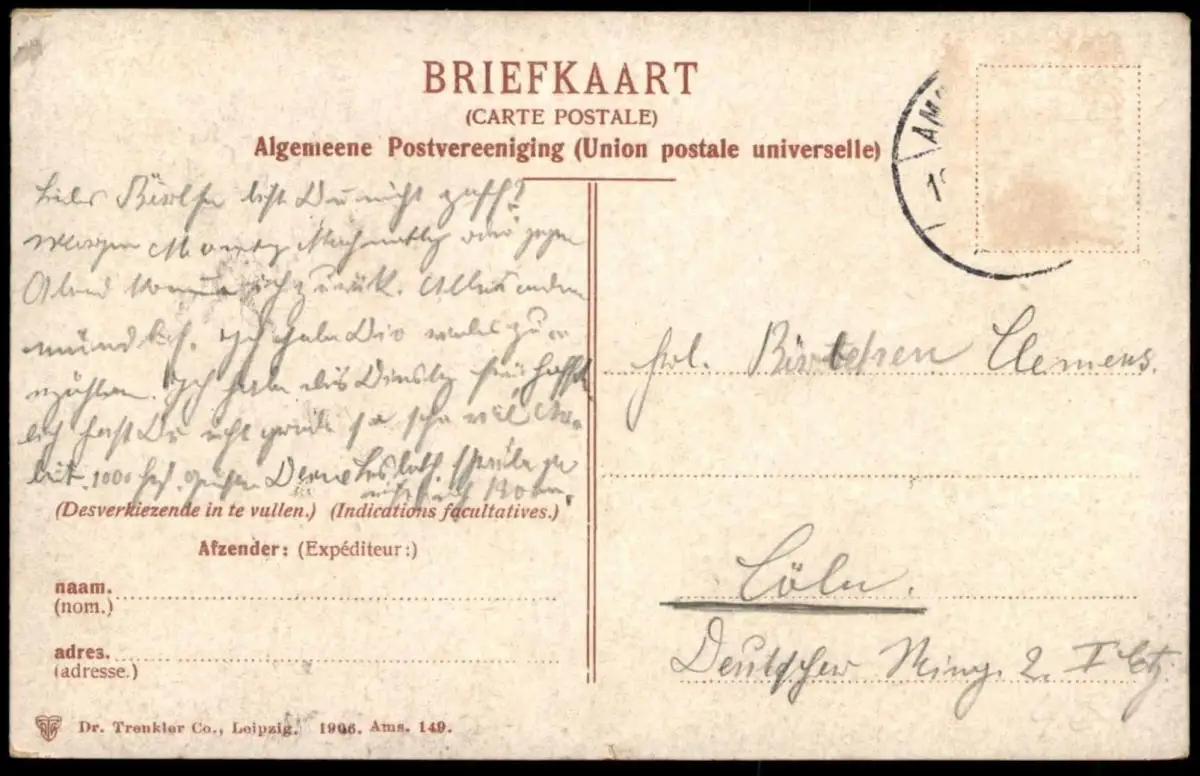 Gelaufen: 1x.xx.19xx mit Stempel Amsterdam nach Cöln