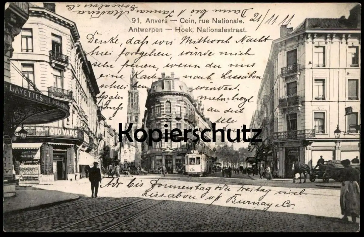 ALTE POSTKARTE ANVERS COIN RUE NATIONALE ANTWERPEN HOEK NATIONALESTRAAT QUO VADISVerlag: J. B. Verhoeven, Antwerpen