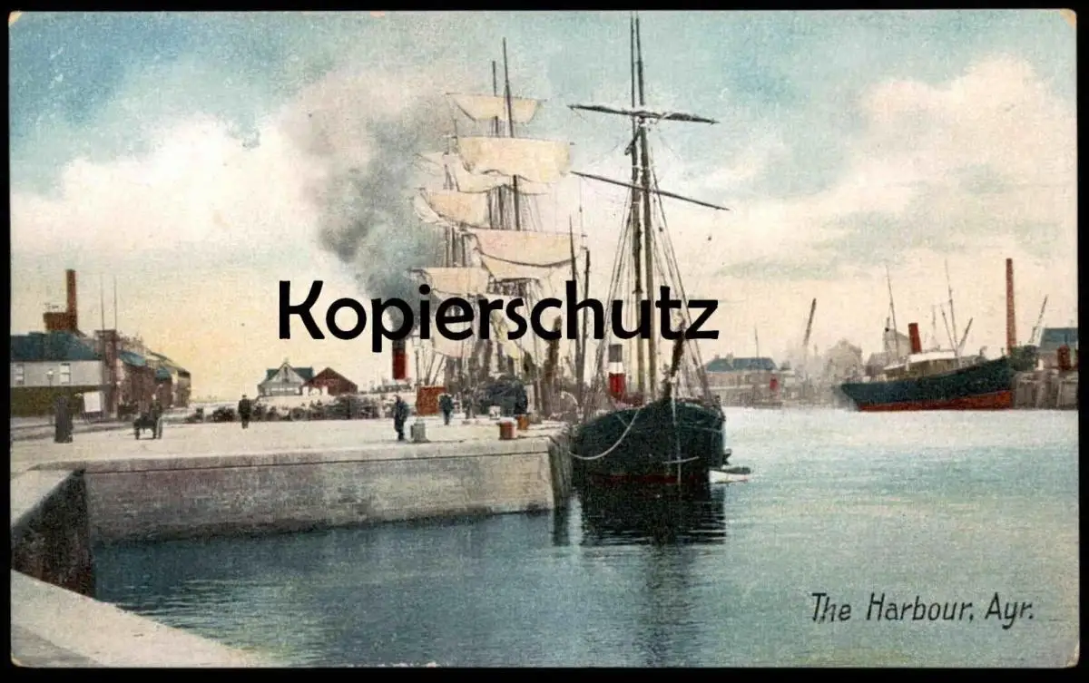 ALTE POSTKARTE AYR THE HARBOUR SCOTLAND Schottland Schiff ship Dampfer Segelschiff Hafen port Ansichtskarte cpa postcard