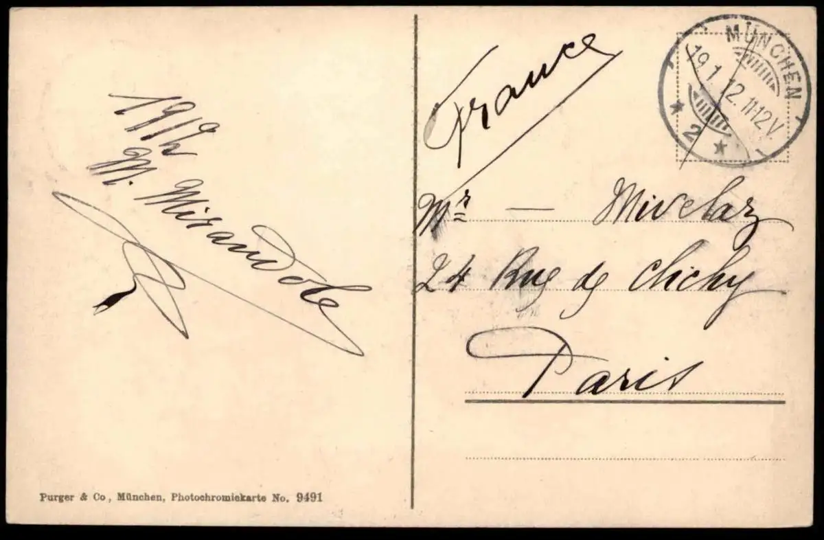 Gelaufen: 19.01.1912 mit Stempel München nach ParisErhaltung (s. Scan): gut / 915539