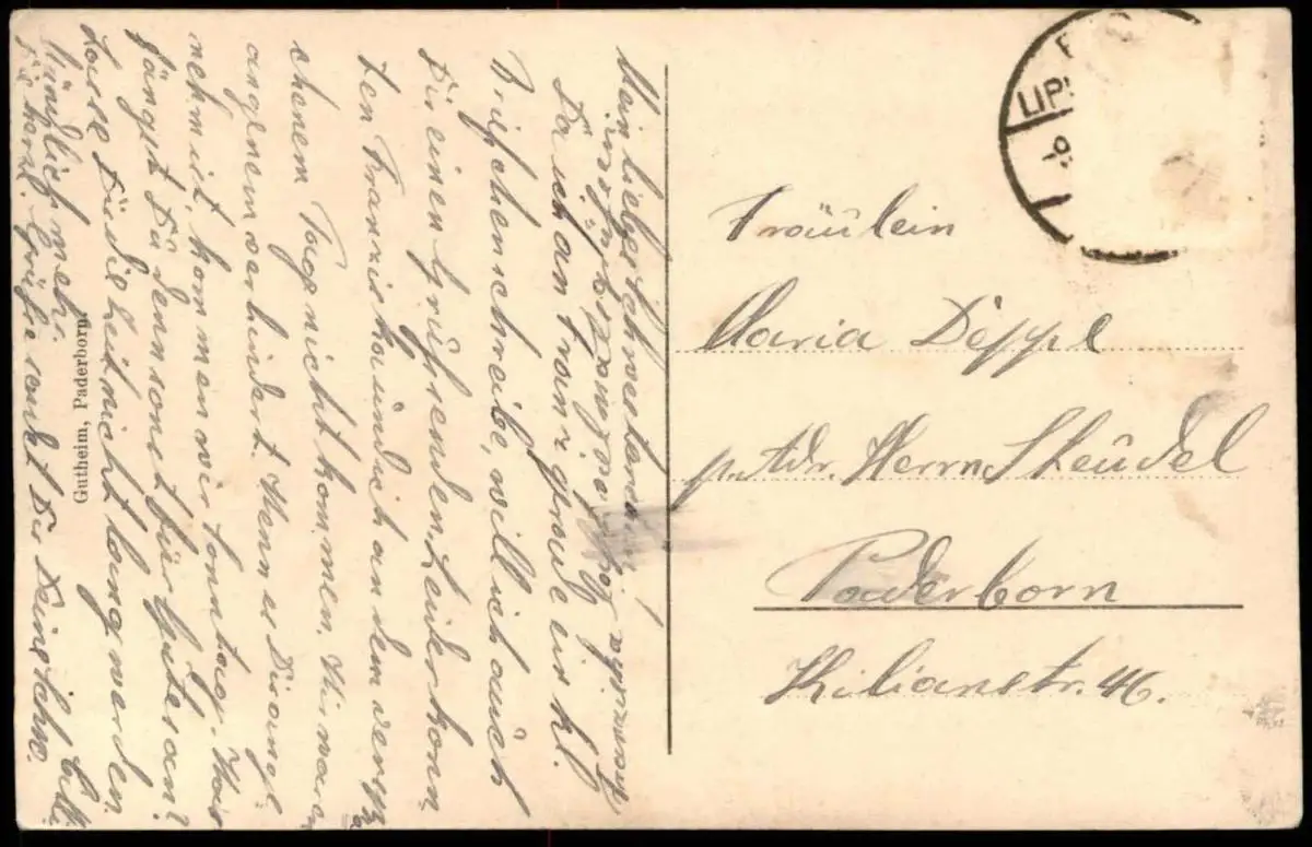 Gelaufen: 09.xx.19xx mit Stempel Bad Lippspringe nach Paderborn, Briefmarke mit leichten Spuren entfernt