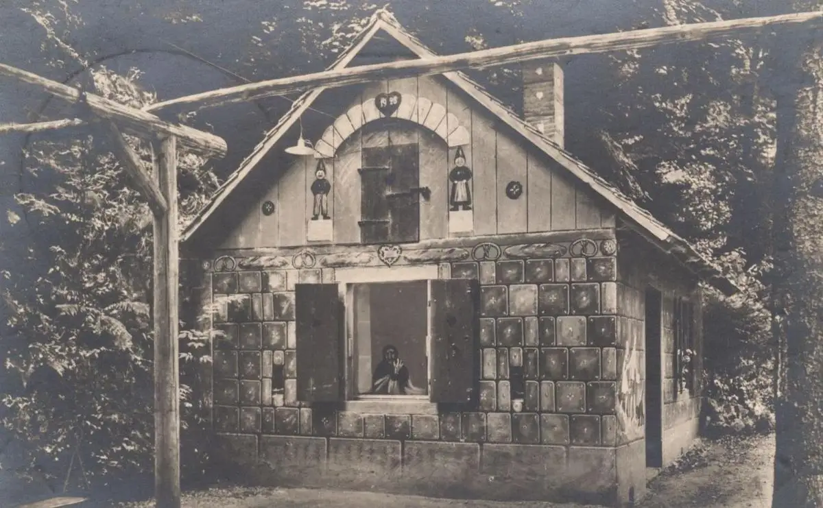ALTE POSTKARTE BADENWEILER KNUSPERHÄUSCHEN HÄNSEL UND GRETEL HEXE witch Märchen fairy tale Waldrestaurant Bergmannsruhe