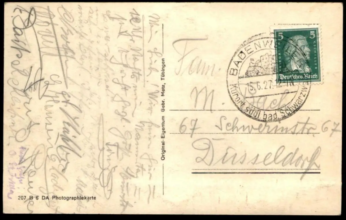Gelaufen: 15.06.1927 mit Stempel Badenweiler nach Düsseldorf