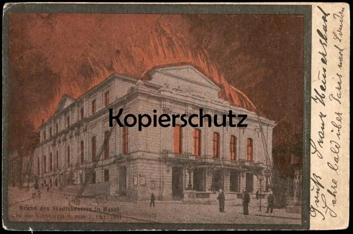 ALTE POSTKARTE BASEL BRAND DES STADTTHEATERS NACHT VOM 06. ZUM 07. OKTOBER 1904Verlag: unbekannt