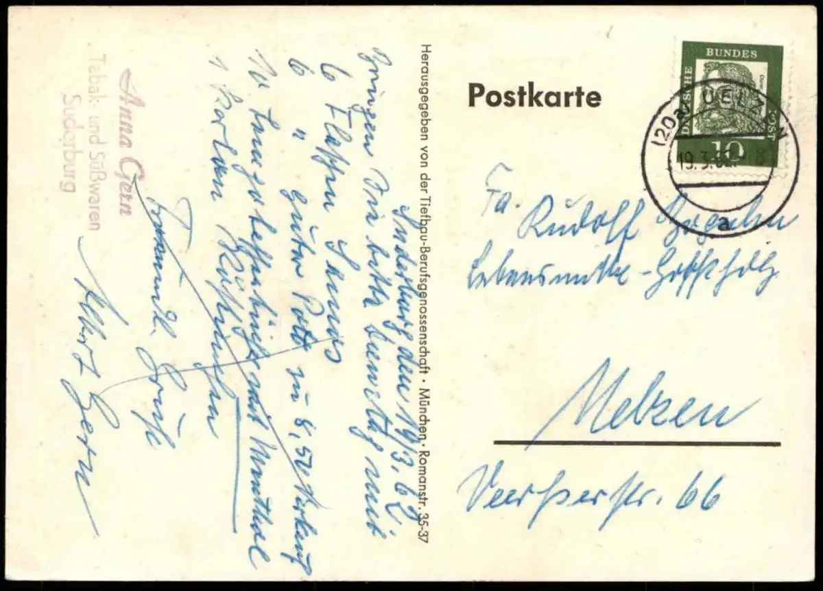 Verlag: Tiefbau Berufsgenossenschaft, München Gelaufen: 19.03.1962 mit Stempel Uelzen nach Uelzen, Verfasser Albert Gern
