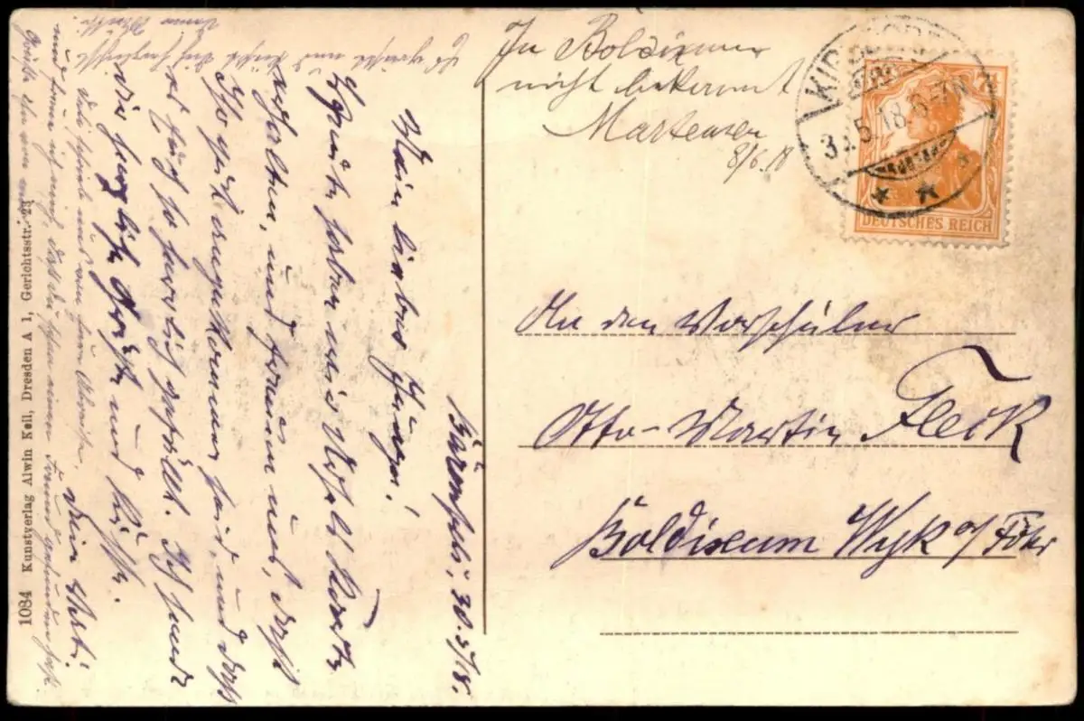 Gelaufen: 30.05.1918 mit Stempel Kipsdorf nach Wyk auf FöhrErhaltung (s. Scan): gut - mittel, unten mittig etwas bestoßen / 915686