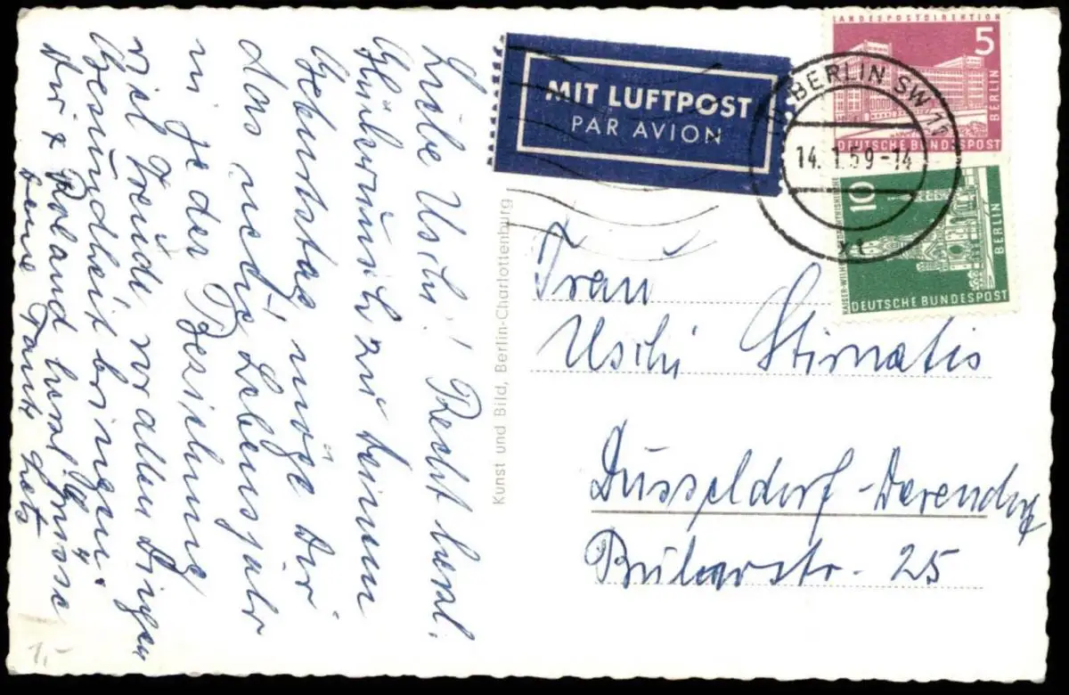 Gelaufen: 14.01.1959 mit Stempel Berlin per Luftpost nach DüsseldorfErhaltung (s. Scan): gut / 915274