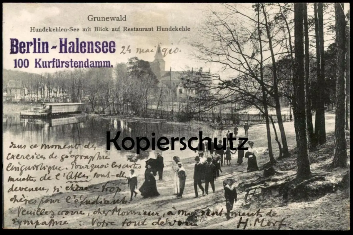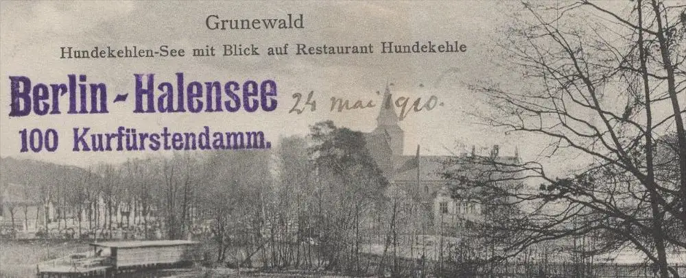 ALTE POSTKARTE BERLIN GRUNEWALD HUNDEKEHLEN-SEE MIT BLICK AUF RESTAURANT HUNDEKEHLEVerlag: J. Goldiner, Berlin, Orig.-Aufn. 1909