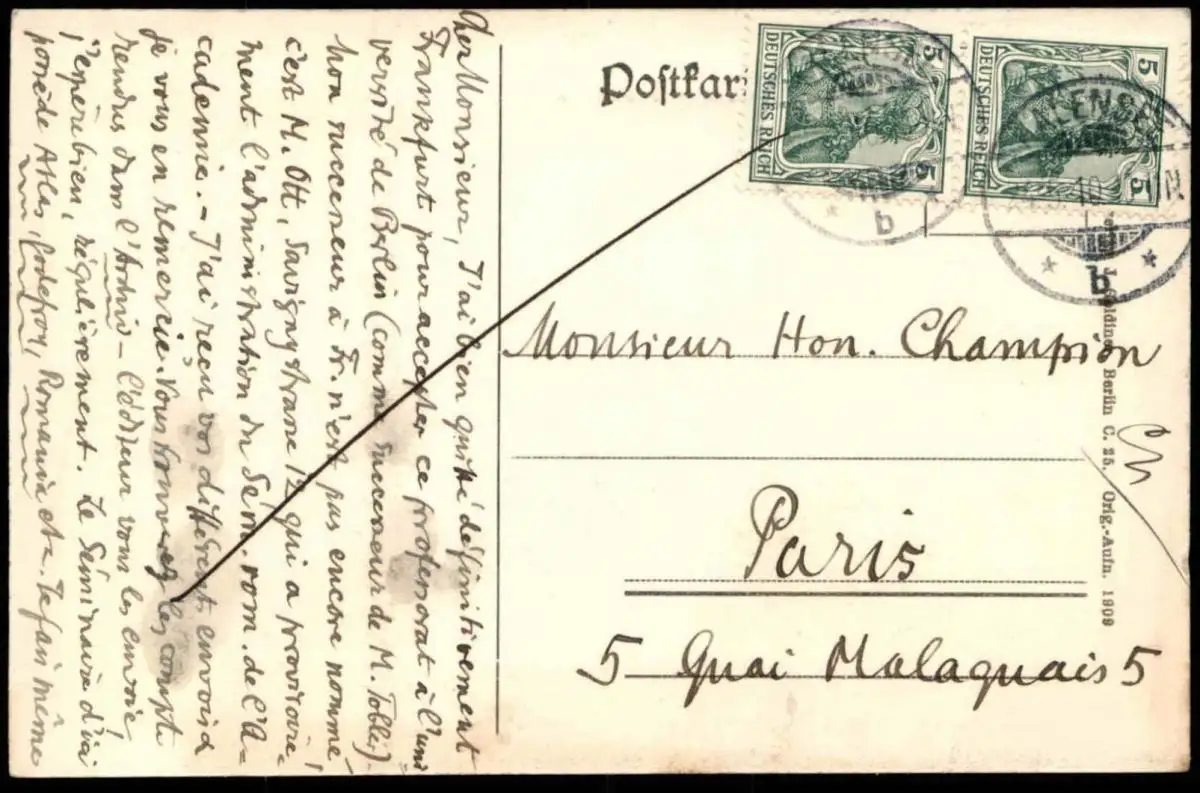 Gelaufen: 24.05.1910 mit Stempel Halensee nach ParisErhaltung (s. Scan): gut / 916331