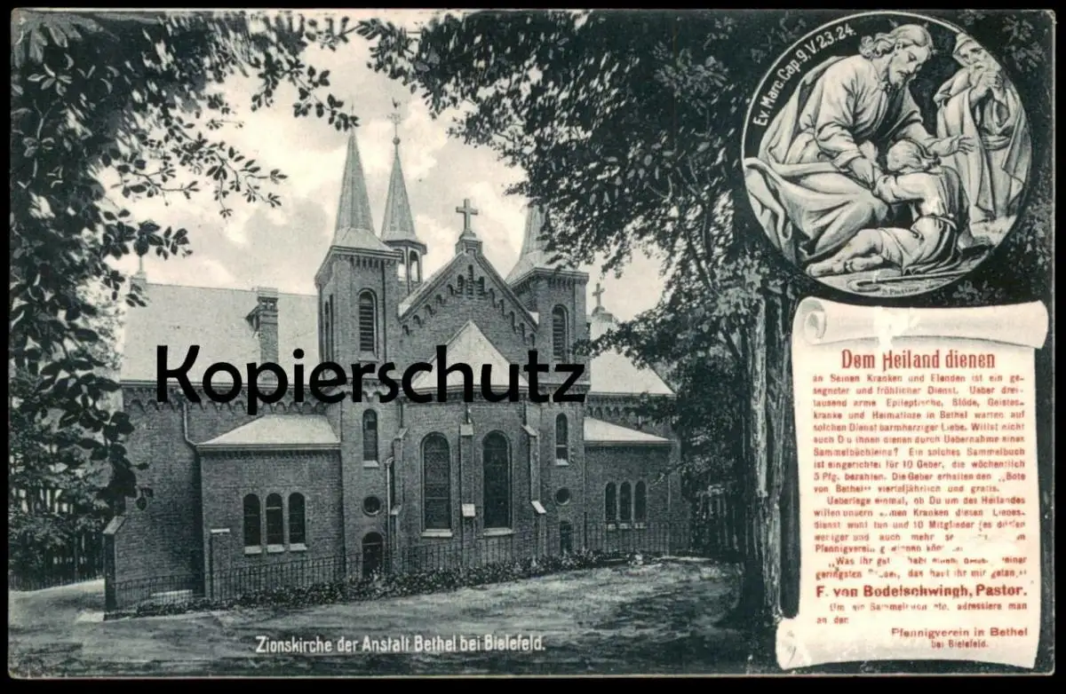 ALTE POSTKARTE BETHEL BEI BIELEFELD ZIONSKIRCHE DER ANSTALT DEM HEILAND DIENEN PFENNIGVEREIN Bodelschwingh Ansichtskarte