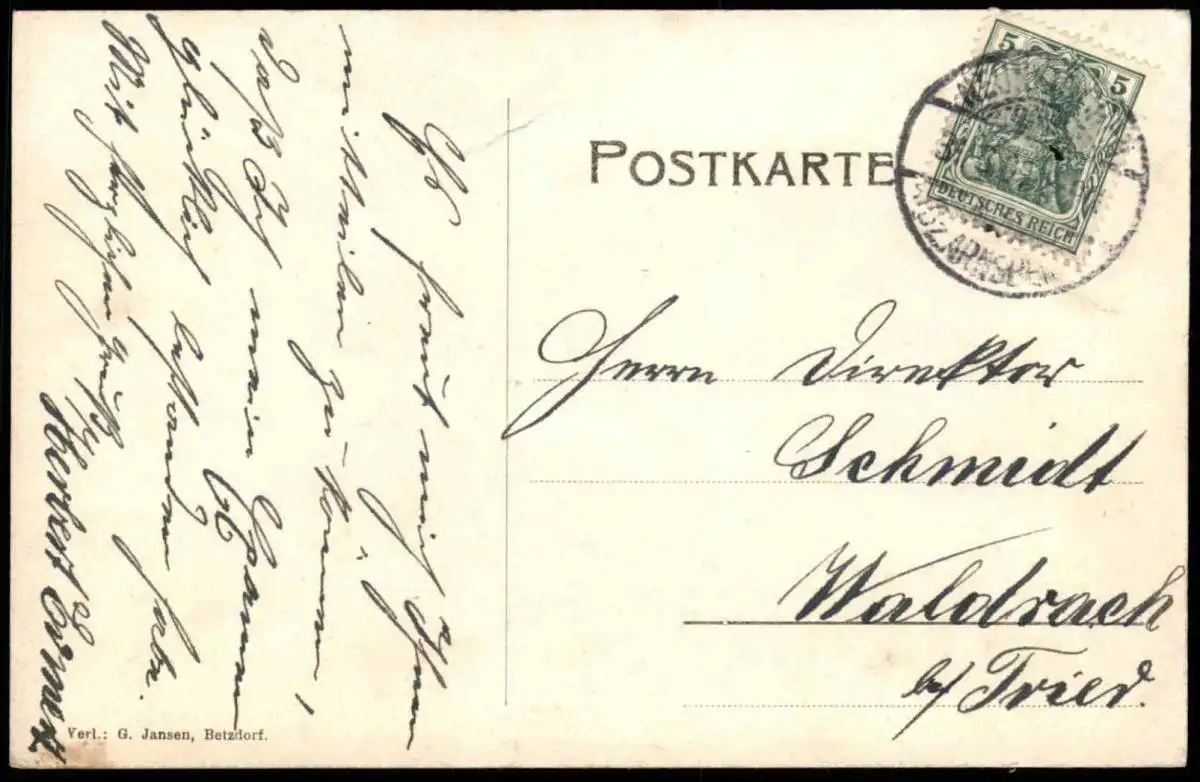 Gelaufen: 31.05.1907 mit Stempel Neunkirchen Bezirk Arnsberg nach Waldrach bei Trier