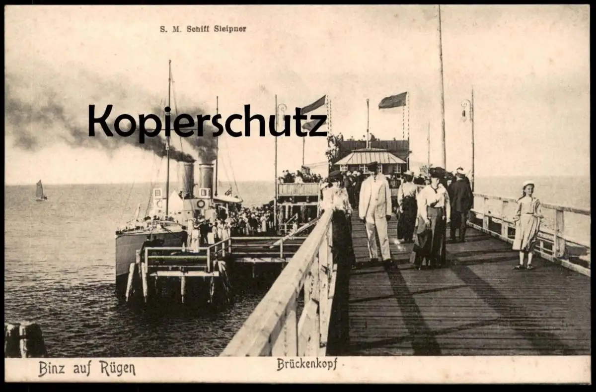 ALTE POSTKARTE BINZ AUF RÜGEN BRÜCKENKOPF S.M. SCHIFF STEIPNER DAMPFER FÄHRE FÄHRSCHIFF Schiff ship postcard cpa