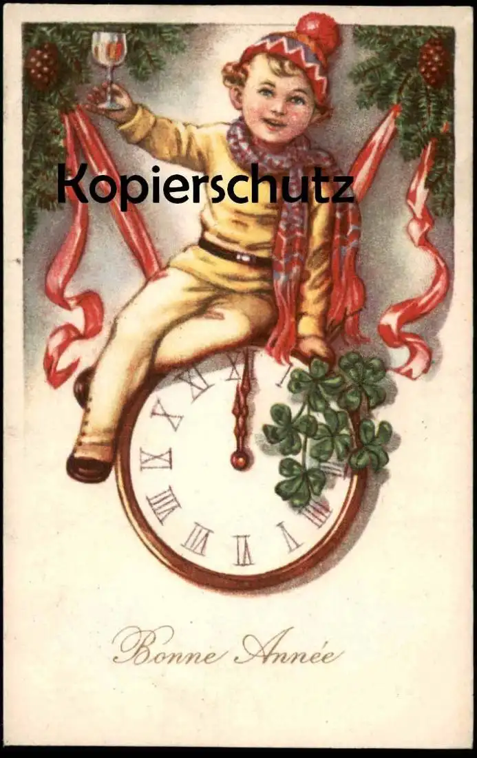 ALTE POSTKARTE BONNE ANNÉE ENFANT CHILD PROSIT NEUJAHR KIND UHR Mitternacht cpa Ansichtskarte AK postcard