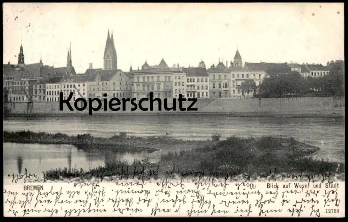 ALTE POSTKARTE BREMEN BLICK AUF WESER UND STADTVerlag: Reinicke & Rubin, Magdeburg 1905Gelaufen: 27.07.1910 mit Stempel Bremen nach SpengeErhaltung (s. Scan): gut / 915675