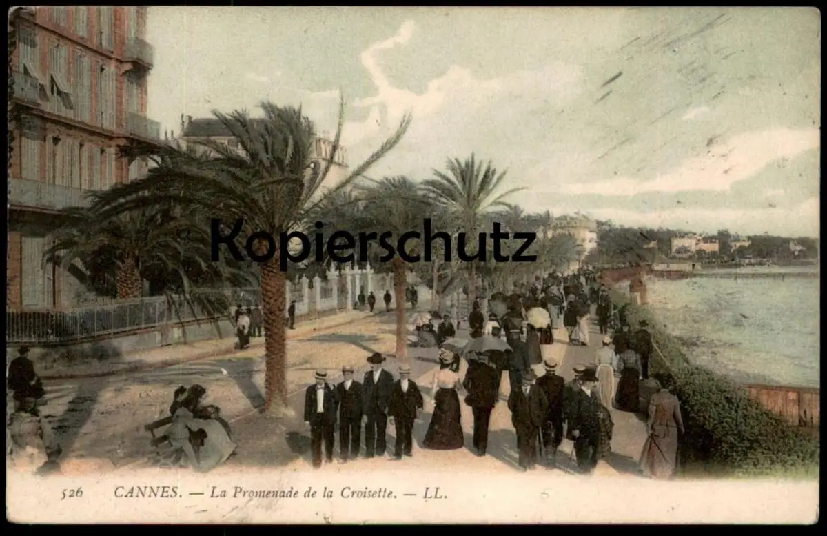 ALTE POSTKARTE CANNES LA PROMENADE DE LA CROISETTE Strandpromenade Familie Männer Frauen family beach plage postcard cpa