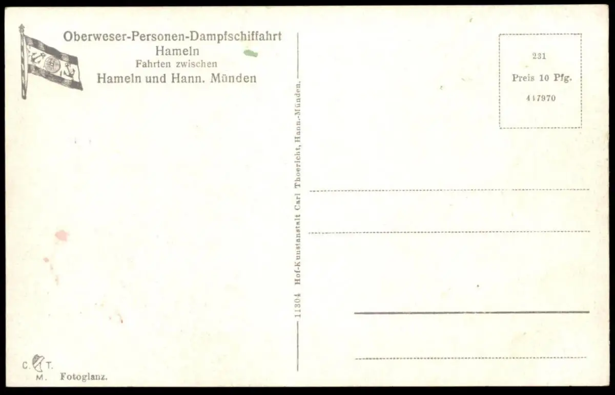 Ä LTERE POSTKARTE CARLSHAFEN OBERWESER PERSONEN DAMPFSCHIFFAHRTVerlag: Carl Thoericht, Hann.-Münden