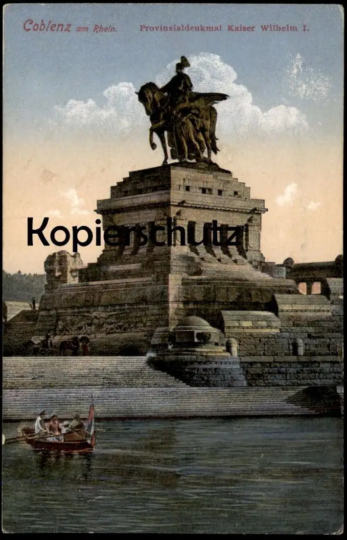 ALTE POSTKARTE COBLENZ PROVINZIALDENKMAL KAISER WILHELM I. Koblenz Boot Denkmal monument 1919 Ansichtskarte cpa postcard