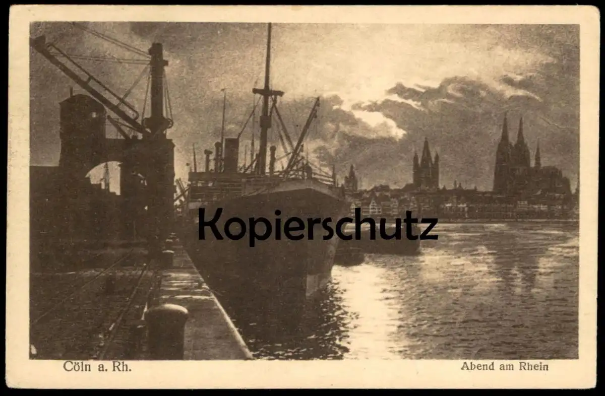 ALTE POSTKARTE CÖLN AM RHEIN ABEND AM RHEIN HAFEN DAMPFER AM KAI SCHIFF ABENDSTIMMUNG ship Ansichtskarte AK cpa postcard
