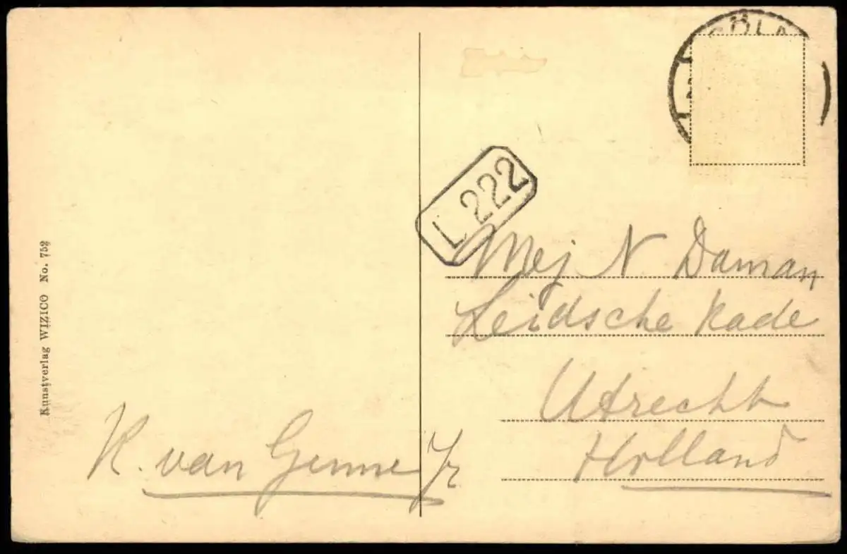 Gelaufen: xx.xx.19xx mit Stempel Cöln nach Utrecht, Briefmarke (sauber) entfernt