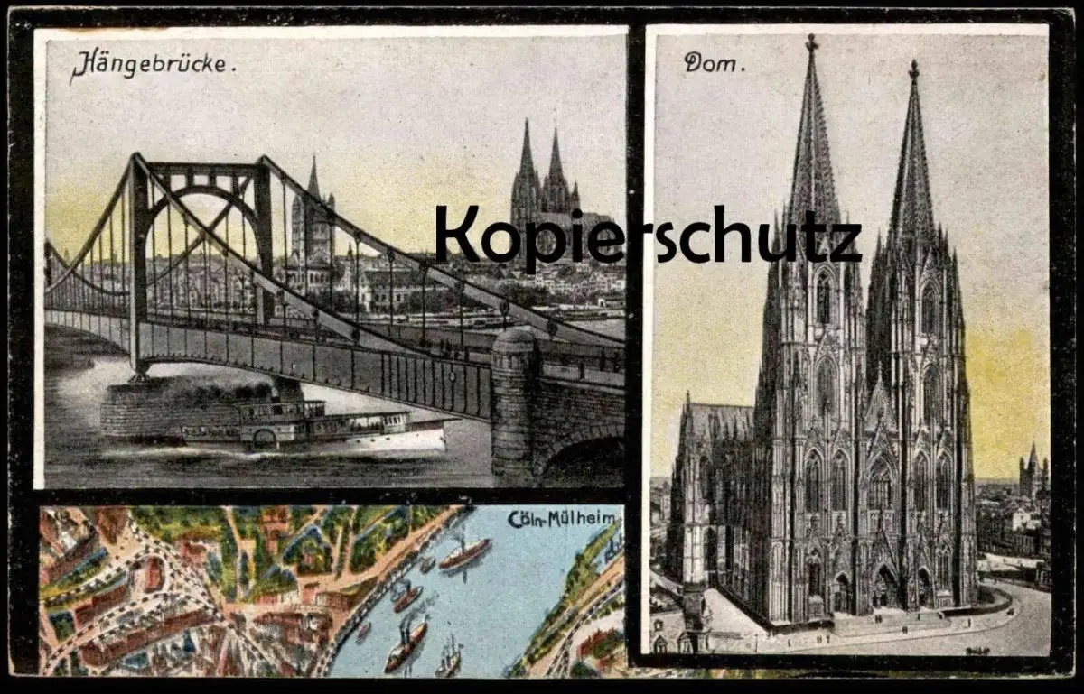 ALTE POSTKARTE CÖLN HÄNGEBRÜCKE RHEIN MÜLHEIM & DOMVerlag: unbekannt