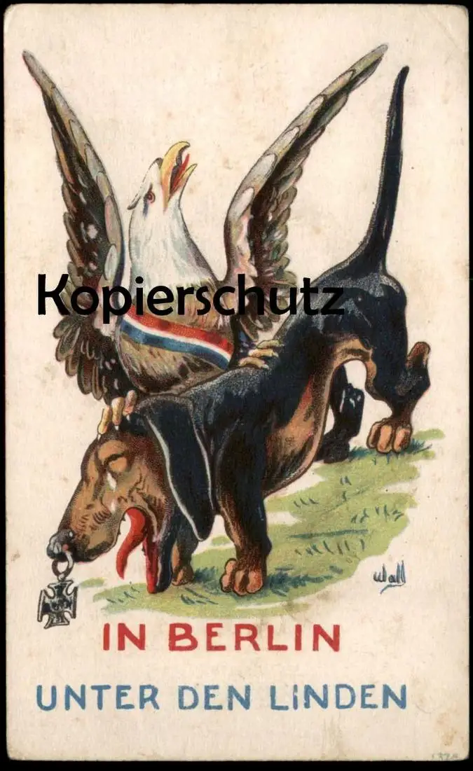 ALTE POSTKARTE DACKEL ADLER PATRIOTIK POLITIK BERLIN Dachshund Teckel political cartoon Karikatur eagle dog postcard