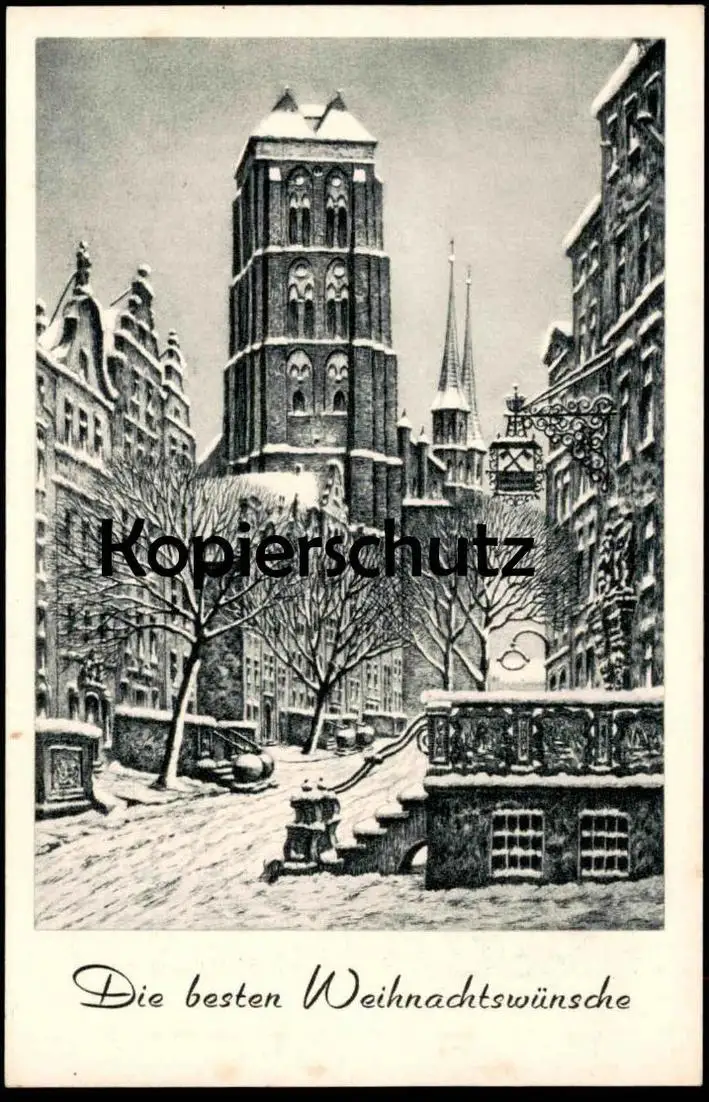 ALTE POSTKARTE DANZIG DIE BESTEN WEIHNACHTSWÜNSCHE GDANSK ST. MARIEN RADIERUNG VON PAUL KREISEL ZENSUR B. HELLINGRATH AK