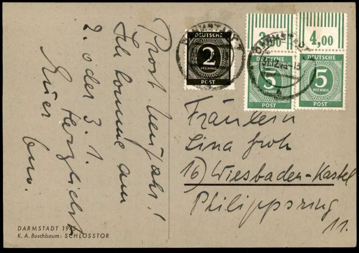 Gelaufen: 31.12.1946 mit Stempel Darmstadt nach Wiesbaden KastelErhaltung (s. Scan): gut - sehr gut / 916421
