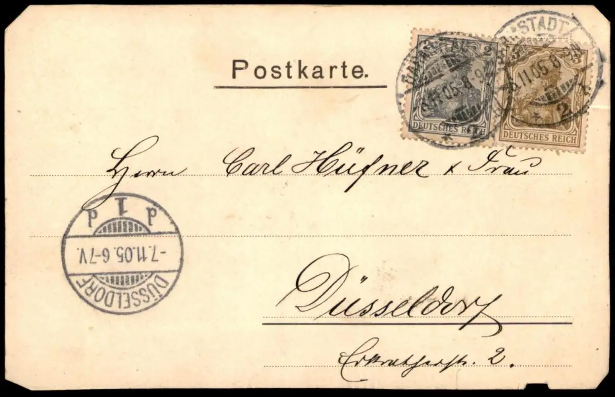 Gelaufen: 06.11.1905 mit Stempel Darmstadt nach DüsseldorfErhaltung (s. Scan): schlechter, Ecken leicht beschädigt, Rand unten links an kleiner Stelle ebenfalls leicht beschädigt / 915322