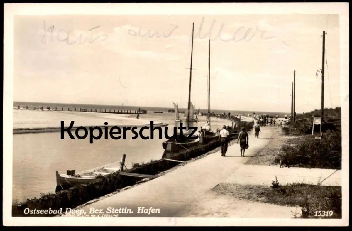 ALTE POSTKARTE DEEP BEZIRK STETTIN HAFEN OSTSEEBAD