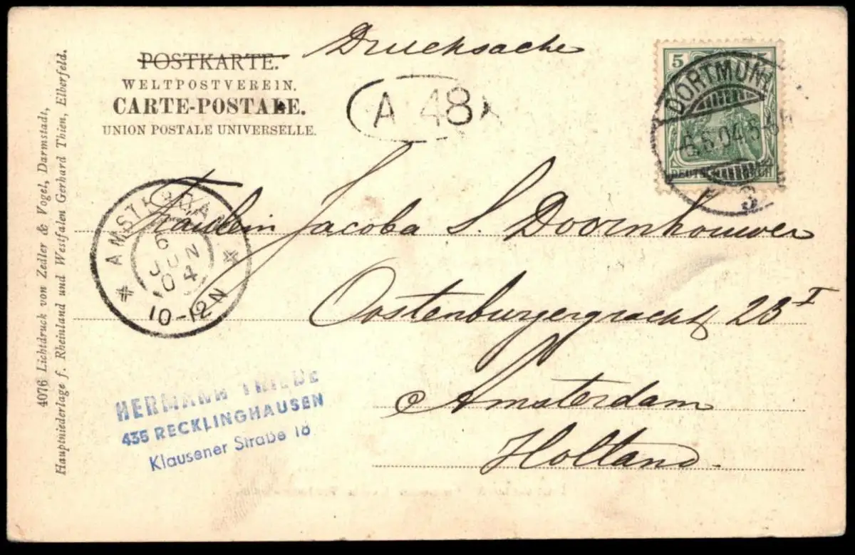 Gelaufen: 06.06.1904 mit Stempel Dortmund nach Amsterdam