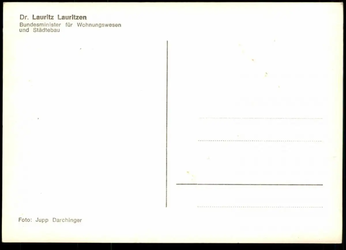 ALTE POSTKARTE DR. LAURITZ LAURITZEN MDB BUNDESMINISTER FÜR WOHNUNGSWESEN UND STÄDTEBAUVerlag: unbekannt, Foto Jupp Darchinger