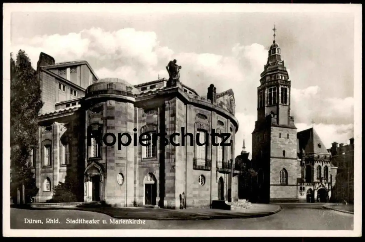 ALTE POSTKARTE DÜREN STADTTHEATER UND MARIENKIRCHE 1941 Feldpost Theater Kirche Ansichtskarte AK cpa postcard