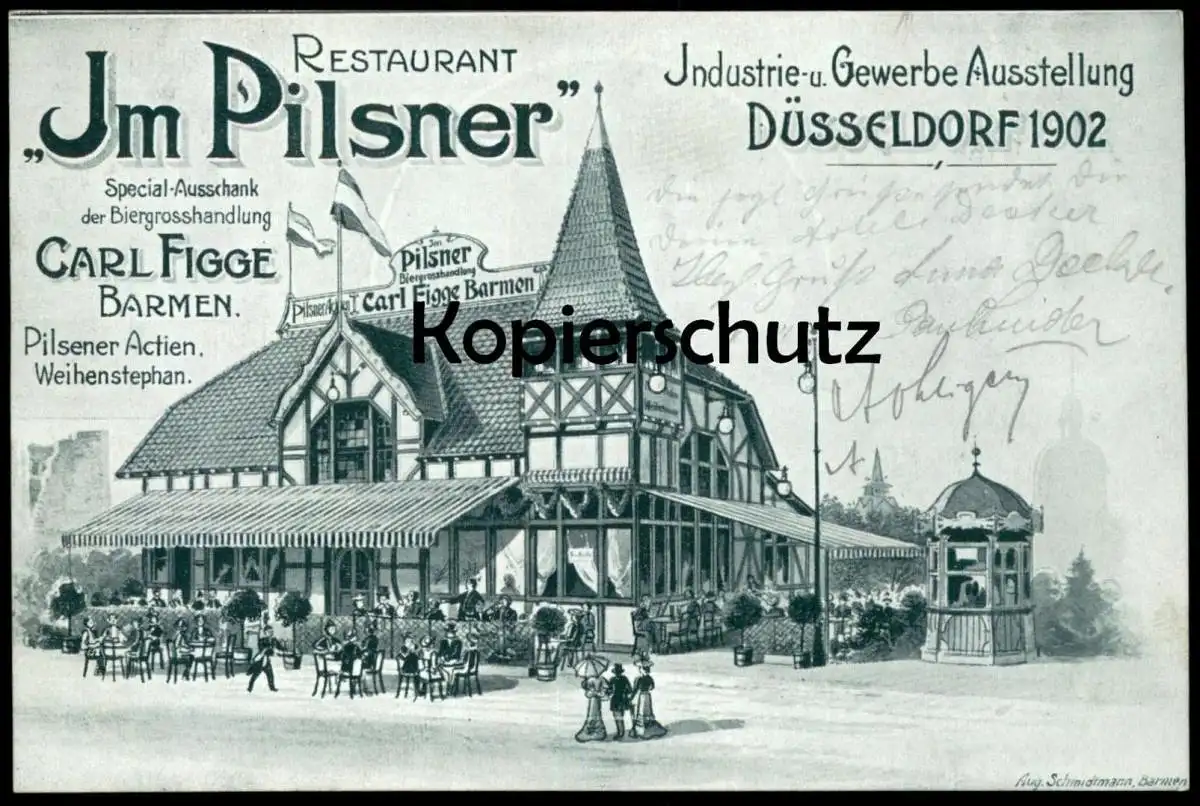 ALTE POSTKARTE DÜSSELDORF AUSSTELLUNG 1902 RESTAURANT IM PILSNER CARL FIGGE BARMEN WEIHENSTEPHAN Wuppertal cpa postcard