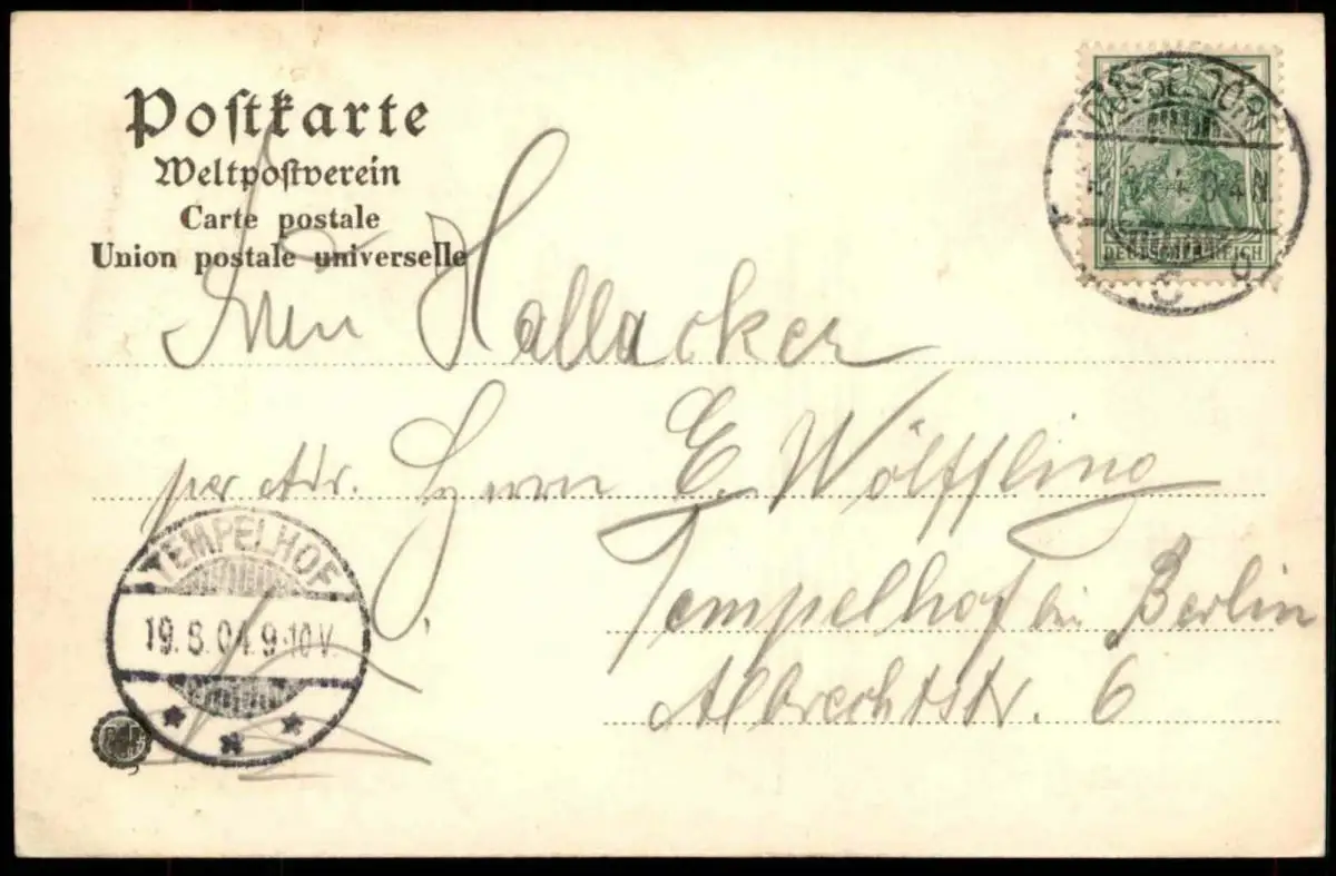 Gelaufen: 18.06.1904 mit Stempel Düsseldorf nach Tempelhof bei Berlin